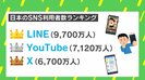 現在、日本のSNS利用者数は1位がLINE(9700万人)、2位がYouTube(7120万人)、3位がX(6700万人)となっているがmixi2はどこまで伸びていくのか?