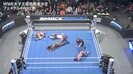 トップ女子レスラー4人がそれぞれコーナーから技を繰り出すという“合体空中技”が炸裂した。全員がリングで大の字になるという光景に会場が騒然としていた。