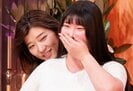 Mカップグラドルの胸にヒコロヒーがタッチ。片方約5kgの重さを実感し、「柔らかいし可愛いかも」と感想を語った。