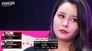 この場面では元ディーラーのポーカー美女・山瀬まゆがチップリーダー。それに続いてダーツ兼ポーカー美女のまよんぬが2位、以下Sashimi、廣井佑果子と続く順位状況。まずSashimiがスペードとダイヤの「8」で2Kのチップを差し出した。続いてまよんぬがスペードの「A」とダイヤの「6」でチェック、選択を保留した。