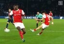 そこから伊東、MFマーシャル・ムネツィと繋がって敵陣ボックス内で再びボールを受けた中村は、ダイレクトで右足シュート。地を這うような鋭いグラウンダーシュートは、完璧な軌道でゴール右隅に突き刺さった。構えていたドンナルンマも一歩も動けずただボールを見送り、唖然とした表情を見せていた。