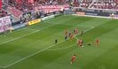 バイタルエリアでエッゲシュタインが左足を振り抜くと、これをバイエルンMFアレクサンダル・パブロビッチが体を投げ出してブロック。そのこぼれ球を右WGのレロイ・サネが拾って自慢のスピードを活かしたカウンターをスタートさせようとしていた。