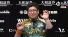 同1本場、鈴木大介へトップ取りに向けたチャンス手が入る。白が暗刻で赤も1枚。カンチャン2組のイーシャンテンとすると、5巡目にカン4索を引いてカン八万待ちの即リーチだ。高らかに牌を上げ、小気味良く牌を横にした。佐々木がドラ3筒を暗刻にしたクイタンでテンパイ、さらには浅井から追っかけリーチと場は沸騰するが、鈴木大介がしっかり八万をツモってリーチ・ツモ・白・赤の1万2000点(+300点)を入手、たろうを逆転した。
