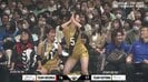 女子バレーのオールスターゲームにて試合中断を余儀なくされた場面で、TEAM NICHIKAの松岡芽生がリズムに合わせて“キレッキレ”のダンスを笑顔で披露。会場が可愛らしいダンスに魅了された。