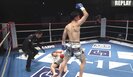 両者譲らず至近距離で打ち合う打撃戦は、残り30秒で急展開。相手が後方に大きく吹っ飛ぶカウンターでのパンチ、さらに追撃の連打で腰から砕け落ちる連続ダウンで残り時間“0秒”での劇的KO決着。放送席から「会場が爆発している」など驚きと称賛の声が上がった。
