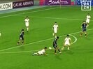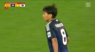 右サイドを起点に攻め込むと、ボールはボックス内を経由して相手陣内のペナルティーアーク付近へ。そこでパスを受けた中島は左足でトラップし、さらに中央へ切れ込んでいく。相手が厳しく寄せてきたが、次の瞬間に超絶テクニックで局面を打開した。