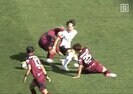 このルーズボールを浦和の渡邊が回収しようとした時だった。大迫は背後から忍び寄り足を出して奪い返そうとしたのだが、右足の足裏で渡邊の右足を踏みつけてしまったのだ。