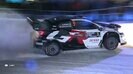 まずはトヨタの新鋭、サミ・パヤリ。俯瞰映像では、白いGRヤリスが真っ白いコース上を美しい弧を描くように走り、低い位置のカメラでは、リアを豪快に流しながら白煙をあげて駆け抜ける姿が収めされている。