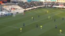 さらに北川は内側を閉じて間合いと仕掛けのタイミングを測る。すると、ラソが左足のインサイドで縦のスペースにボールを突き、突破を狙ってきた。しかし、背番号13は完全に読み切っていた。ラソの足からボールが離れた瞬間を見逃さず、自身の身体をボールとラソの間にねじ込ませたのだ。