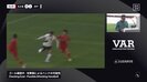 ネットが揺れてから約2分後、判定は大迫のハンドでノーゴールに。OFRに用いられたリプレイ映像は斜めからのもので、この角度からなら肩ではなく腕に当たっているようにも見える。一方で判定が覆るような腕に当たっている確証も得られない映像のため、実況席は驚きを隠せず。 大迫は苦い表情で再び肩で合わせたことをアピールした。