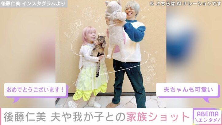 身長115cmモデル・後藤仁美、結婚8周年を家族ショットで報告「子どもと夫がにこにこ」 ABEMAエンタメ 2025/02/25 13:09 拡大する 先天性の軟骨無形成症により身長が115cmであることを公表しているモデルの後藤仁美が、記念日に撮影した家族との写真を公開した。 2017年2月に結婚し、2024年5月には「わたしの心配をよそに元気いっぱいに生まれてきてくれました」と第1子出産を報告していた後藤。SNSでは子どもを抱っこする姿や、ベビーカーを押す姿など子育ての様子を発信している。 22日は8周年の結婚記念日だったそうで、「子どもと夫がにこにこしているとわたしもうれしい」と、夫や子ども、飼い猫と撮影した家族ショットを披露した。 続きを読む