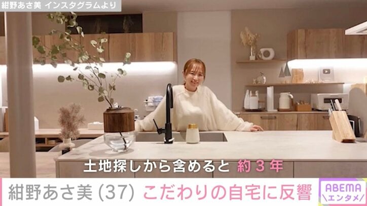 4児の母・紺野あさ美(37)、土地探しから完成まで約3年…こだわりの自宅を公開「ほんとに憧れる理想のおうち」ファン注目 ABEMAエンタメ 2025/02/28 13:57 拡大する 4児の母でタレントの紺野あさ美(37)が、土地探しから含め約3年かかったというこだわりの自宅を披露し、反響を呼んでいる。 紺野は、2017年1月に北海道日本ハムファイターズの杉浦稔大投手(33)と結婚。7歳、6歳、3歳、生後6カ月と、4人の子どもの育児に奮闘している。 2024年5月に更新した自身のYouTubeチャンネルでは、移動のしやすさにこだわったという新居のルームツアー動画を投稿。その後も、夫が遠征中のワンオペ育児に励む姿や長女の誕生日を家族でお祝いするなど、新居での様子を紹介していた。 続きを読む
