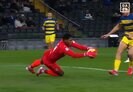 3mほどの至近距離からの強烈なシュートだったが、鈴木はワンバウンドしたボールに即座に反応。身体を倒しながら圧巻の反射神経でセーブする、さらにこぼれ球にもすかさず反応してキャッチし、ピンチを防いでみせた。ウディネーゼにとっては絶好機のチャンスだっただけに、アッタは思わず頭を抱えていた。