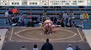 幕下二十八枚目・欧勝竜(鳴戸)と幕下二十七枚目・東誠竜(玉ノ井)の一番での出来事。立ち合い正面から当たると、突き押しの応酬を繰り広げた両力士。欧勝竜が押してからすかさず引いてはたき込むと、つっかえ棒を外されたように東誠竜は前のめりに倒れた。