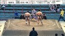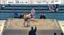 三段目十八枚目・佐田ノ輝(境川)と三段目二十枚目・魁新丸(浅香山)の一番。最初の立ち合いでは魁新丸がつっかけてしまい、佐田ノ輝は立ち上がれず。行司に「まだまだ」と制止されて不成立になった。続く立ち合いでは、今度は佐田ノ輝が先に立ち、魁新丸も受けて立ったため、立ち合い成立と判断した行司は「はっけよい、のこった、のこった」と掛け声をかけた。