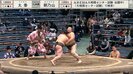三段目二十一枚目・朝乃山(高砂)と三段目五十九枚目・太秦(伊勢ノ海)の一番。太秦は京都府出身、平成20年(2008年)生まれの16歳。中学卒業後の昨年五月場所で序ノ口デビューを果たし、三段目まで番付を上げてきた期待の若手だ。身長183.1センチ・体重123.9キロと16歳ながら大きな体格を持ち、今場所はここまで無傷の5連勝と快進撃を続けてきた。