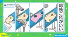 アニメーションには、やる気を失くしたポメラニアンが滑り台に乗っていくと、シャワーを浴び、拭き上げからドライヤーまで行われ、最後には布団に辿り着く様子が描かれていた。