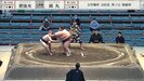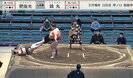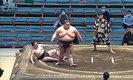 序ノ口十一枚目・錦丸(朝日山)と序ノ口十九枚目・肥後光(木瀬)の一番での出来事。21歳の錦丸は体重220.5キロの超重量級。師匠である元関脇・琴錦の朝日山親方から“太り過ぎ”と言われており、健康のため、入門時の170キロを目指して減量すると宣言したことでも注目を集めている力士だ。対する肥後光は37歳のベテランで、体重106.5キロ。両者の体重差は114キロにもおよんだ。