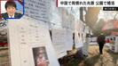 中国の公園で大量に貼られたA4サイズの紙。上海出身のABEMA的ニュースショー番組スタッフによると「婚活の情報が書かれた紙」で、中国の公園ではごく普通の光景で「ちょっとした公園」ではどこでもやっているという。