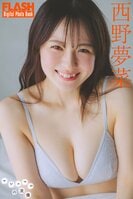 西野夢菜(にしの・ゆめな)。2001年5月25日生まれ、23歳。茨城県出身。T159・B92W57H90。2022年11月24日発売の『週刊ヤングジャンプ』でグラビアデビュー。Fカップのマシュマロボディとして人気を博す。2023年からは俳優として舞台にも挑戦し、2024年は5本のステージに立った。FLASHデジタル写真集『マシュマロの流儀』はkokode digitalほか各電子書店で発売中。