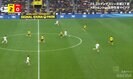 そこからドリブルをスタートすると、まずは5mくらいの位置で相手DFヤン・コウトに左から寄せられるも強引に振り切って加速。20mくらいの場所でさらにスピードアップすると、今度はMFサリフ・エズジャンの追走を、ボールを持っているにも関わらずスピードで振り切る。相手が手を伸ばしてファウル覚悟で倒そうとしているものの、佐野はお構いなしで加速した。