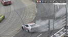原因として映し出されたのは、88号車の「SVG」ことシェーン・ヴァン・ギスバーゲンのマシン。今回レースが開催されたオーバルトラック「マーティンズビル・スピードウェイ」は、コーナーの路面が内側と外側で異なる二重構造になっているが、この外側の方のアスファルトエリアでスピンターンをしてレース復帰を試みている。