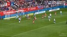 すると日本代表ストライカーは、バックステップを踏んでボールの落下点に入ると、ジャンプせずに背筋力を活かしてコースを狙うようなヘディングシュート。枠内に飛んだシュートだったが、マインツのGKロビン・ツェントナーが右手のワンハンドセーブでボールを弾き出した。