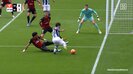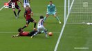縦方向はDFホアン・モヒカ、マイナス方向はMFセルジ・ダルデルに蓋をされた状況。しかし久保は臆することなく、ジリジリと縦に運び左足のアウトサイドで一度マイナスに仕掛けるような動きを見せつつ、左足の裏でボールの上を舐めて縦方向に急発進した。体半分ほど、モヒカの前に持って行った久保は、ゴールライン際から右足でマイナスのクロスを入れると、これは滑り込んで対応したモヒカにブロックされたが、コーナーキックを獲得するプレーとなった。