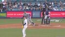 0-1、ドジャース1点のビハインドで迎えたこの試合の3回表・カブスの攻撃、2死満塁の場面で、4番マイケル・ブッシュが放った一撃は、快音と共にセンター方向に向って高々と舞い上がる特大の飛球に。そのまま着弾し、2打席連続弾となるかに思われたものの、これを追ったセンターのアンディ・パヘスが、フェンス際いっぱいのところでグラブを伸ばし、タイミングを合わせてジャンプ。するとフェンスオーバー直前のところで打球はパヘスのグラブに入り、フライアウト。パヘスの好プレーで、佐々木は絶体絶命のピンチを脱することとなった。