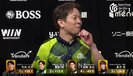 インタビューが始まると、いつものように“しゃべくり”を展開する園田。舞台袖には同じプロ団体所属ということもあり、よく知る間柄のセガサミーフェニックス・竹内元太(最高位戦)もいたことから、徐々にその熱も高まっていった。実際、リポーターの松本圭世がしっかりと投げかけた質問は最初の「さまざまな技を見せてくれましたが、結果2着。率直にいかがでしょうか?」だけ。
