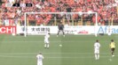 小見はペナルティースポットからペナルティーアークまで直線上に離れて長めの助走を取ると3歩左へ。そこから小刻みなステップを踏みながらゆっくりとボールへ近づいていく。ボール目前まで近づくとさらに細かくリズムを刻む。緩急をつけて右足を振り抜き、昨シーズンまで同僚だった相手GK小島亨介の逆を突いてゴール右上にシュートを決めた。