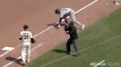 マクマーンはわずかな望みをかけて、全力疾走からウェードのタッチを掻い潜ろうとヘッドスライディングを敢行。しかし回避することはできずタッチされると、勢い余ってファーストベースを大きく飛び越えてしまった。その先には一塁塁審のクリス・グッチオーネ氏の姿が。ぶつかりそうになりながらも、グッチオーネ氏は滑り込んでくるマクマーンをジャンプで神回避。さらに、着地から流れるように、いつもよりも"カッコつけ"たようにアウトポーズを取ったのだ。