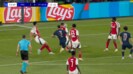 トーマスより先にボールに触り、こぼれたボールはFWウスマン・デンベレを経由して再びボックス内のハキミの元へ。するとモロッコ代表DFは、DFウィリアム・サリバとDFヤクブ・キヴィオルのプレッシャーを受けながらもまるでストライカーのような優しいボールタッチから右足を一閃。コントロールシュートをゴールの右隅へと突き刺した。