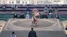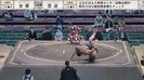 三段目でアクロバティックな結末を迎えた取組が発生。館内は大きくどよめき、「大回転」「これはキレイに決まった」など相撲ファンから称賛の声が上がった。