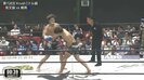 すると第2ラウンドで試合は動く。夜叉猿はさらに勢いを増して前に出る。終始プレッシャーをかけ、パンチを顔面に数発ヒット。さらに左ミドルから右ストレートをきれいに振り抜き、アゴをとらえて戦熊が吹き飛ぶようにダウン。