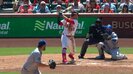 だが、この難局でも冷静そのもの。初球は72.5マイル(約116.7キロ)のカーブでタイミングを外してストライク。2球目は90.8マイル(約146.1キロ)のストレートを高めに投げ込みファールを取ると、最後は外角に85.5マイル(約137.6キロ)のスライダーで空振り三振。わずか3球でこの難敵を封じた。