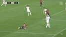 レオ・セアラは自陣の右サイドでパスを受けると、迷うことなくドリブルを開始する。佐々木が猛追してきたが左腕でブロックし、ボールを隠しながら突き進む。約50mを持ち運び、ペナルティエリアの右に進入して、キックフェイントで中央に切り返した。その瞬間、並走していた佐々木の後ろ足に引っ掛かり、転倒したのだ。