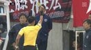 その後プレーが続く中、ボールがタッチラインを割ると、鹿島の鬼木達監督はペットボトルを投げ捨て、曽ヶ端準GKコーチはピッチ近くまで出てきて異議を唱える。その他にも鹿島のスタッフが総出でベンチを飛び出し、納得のいかない様子を示した。これには解説を務めたOBの遠藤康氏が「スタッフの戦う姿勢が良いですよね。鹿島を観る時は、ここに注目して観るんですよ」とコメントし、「ソガさんがあんなに怒ったらダメですよ」と釘を刺した。すると、主審は曽ヶ端準GKコーチにイエローカードを提示した。