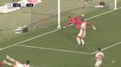 解説・佐藤寿人氏は「フィニッシュというよりもクロスを選択したと思いますけど、仕掛けて外す。推進力のある仕掛けは、やはり俵積田の武器ですよね」とコメントし、「腰が回り切らなくてフィニッシュのような形になったと思いますけど」とボールがポストにヒットした要因を推察した。