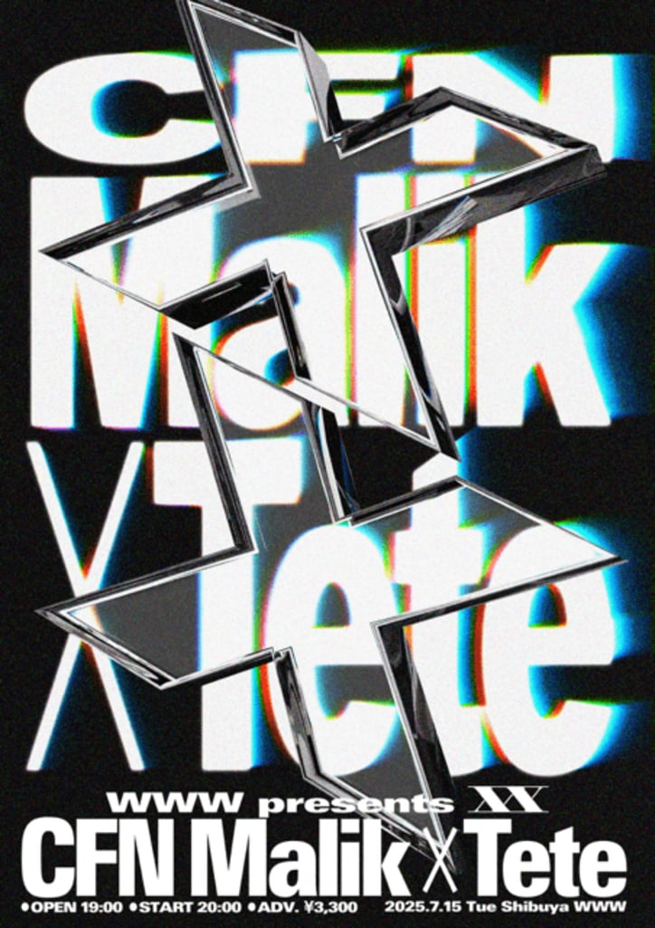 CFN Malik × Tete。時代を突き刺す注目の2組が登場。WWWによるツーマンライブ・シリーズ〈XX〉開催決定。 2025/06/17 19:00 拡大する 渋谷WWWによるヒップホップ・アーティストの表現を引き出すツーマンライブ・シリーズ〈XX(ダブル・エックス)〉が、CFN MalikとTeteを迎え2025年7月15日(火)に開催されることになった。これまで錚々たるラインアップで10回に渡って開催されてきた同シリーズ。人気イベントとしてもソールドアウトを重ねてきた中で、今回はアトランタと横須賀にルーツを持ち、初のミックステープ『MADE MA WHOLE HOOD SWAGED UP』がストリートシーンを席巻。もはや注目のニューカマーではなく、シーンをジャックする急先鋒とも言えるCFN Malikが登場。 続きを読む