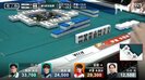 第2試合の南2局、伊達はまず中を仕掛けた。白が暗刻でドラ5筒が1枚、この時点で5200点だ。すぐに6・9索でテンパイ。一方、鈴木大介(BEAST X・連盟)がカン八万待ちでダマテン、鈴木優(U-NEXT Pirates・最高位戦)も勝負気配を見せていた。