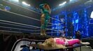 試合中盤、ナイアの猛攻に朦朧とするステファニーをナイアがテーブル上に仰向けに倒すと、ナイアはエプロン上へ。そのまま倒れていく形でテーブルにダイブし、ティファニー諸共圧殺。テーブルは真っ二つとなりティファニーは完全にダウンした。