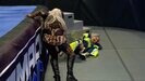 世界的人気を誇る日本人女子レスラーが強烈な技の被害に。場外で王者が仕掛けた危険技にファンも思わず頭を抱えた。