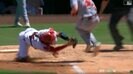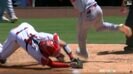 問題のシーンは、1死満塁のチャンスで迎えたナショナルズの攻撃。打席を迎えたガルシアJr.が打ち返した打球は一塁への鋭いゴロとなった。シャニュエルがファーストゴロに仕留め、本塁へ送球したが三塁走者のミラスが滑り込み、ナショナルズが1点を勝ち越した。