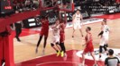 相手の2枚のブロックに対して、西田はレイアップの体勢から空中でボールを右手から左手に持ち替え、そのままスナップを効かせてショット成功。まるで人気漫画『スラムダンク』の流川楓が見せるような華麗なダブルクラッチだった。