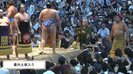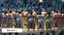 行司の式守鬼一郎が先導する形で西方幕内力士が入場。続いて化粧まわしに「福」の一文字をあしらった赤いだるまが印象的な琴栄峰、嘉陽、さらに20歳の新入幕である藤ノ川が続くと、館内の熱気と歓声も高まりを見せていく。