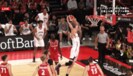 ポイントカードのジャン・ローレンス・ハーパージュニアがゲームメークする中で、狩野がハーパージュニアに付く相手にスクリーン。このタイミングで抜け出したハーパージュニアは、狩野の動き直しに合わせてバウンズパスを通した。これを受けた狩野は、両手でボールをガードしながら豪快にダンクシュートを狙った。しかし、やや跳躍が足りず、ボールがリングに弾かれて得点とはならなかったのだ。