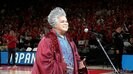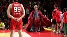 その唯一無二の声で鳴り響く「君が代」は、まさに圧巻。伸びやかかつ美しい「奇跡の歌声」がアリーナ中に響き渡った。歌唱後には「アカツキジャパンの皆さま、魂のプレーを期待しております。心から応援しております。ありがとうございました」と、選手たちにメッセージを送った。