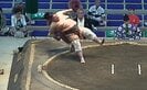 三段目二十八枚目・清乃海(玉ノ井)と三段目二十七枚目・朝心誠(高砂)の一番。立ち合い張って前に出た清乃海。朝心誠は回り込んで動いたが、清乃海は逃さず猛追。激しい攻防が続いた。最後は土俵際、清乃海が突いて出たところ、朝心誠が腕を手繰って必死の反撃。バランスを崩した清乃海は後ろ向きになり背中で押すように相手を下した。まさかの決着に館内騒然、どよめきと拍手が沸き起こった。