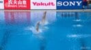 飛込競技といえば、どの種目であっても表彰台の頂点には中国がいるというほどの大国。男子3mシンクロ飛板飛込でも、その強さは不動だった。2位以下を大きく引き離しての最終演技は、難易度3.8の109C(前宙返り4回転半抱え型)。息を合わせて助走に入ると、飛込競技では日本のレジェンドとも呼ばれる寺内健氏が解説で「大丈夫だ、これは」と、全てが終わる前に成功を確信。言葉通りに高速で4回転半回ってから、きれいにタイミングを揃えて入水すると、水しぶきがほとんど出ない「ノースプラッシュ」を決めた。